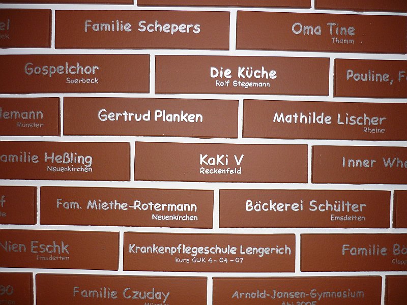 Der KaKiV konnte dann 800€ an Fr. Hüer übergeben. Die Leiterin von Haus Hannah war sichtlich erfreut darüber. Als Dank und Anerkennung wurde eine Kachel mit dem Namen "KaKiV - Reckenfeld" an der "Spenderwand" angebracht.